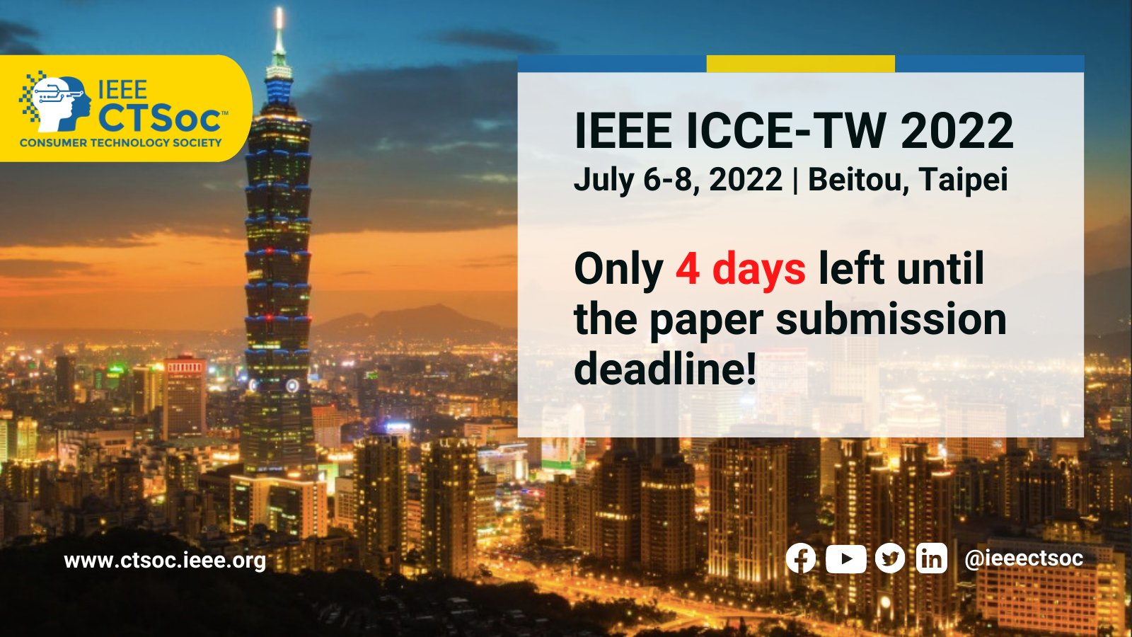 Ieee Consumer Technology Society On Twitter Only 4 Days Left Until The Paper Submission Deadline Https T Co Lne95zxby7 Deadline Of 2 Page Paper March 10 2022 Notification Of Acceptance April 15 2022